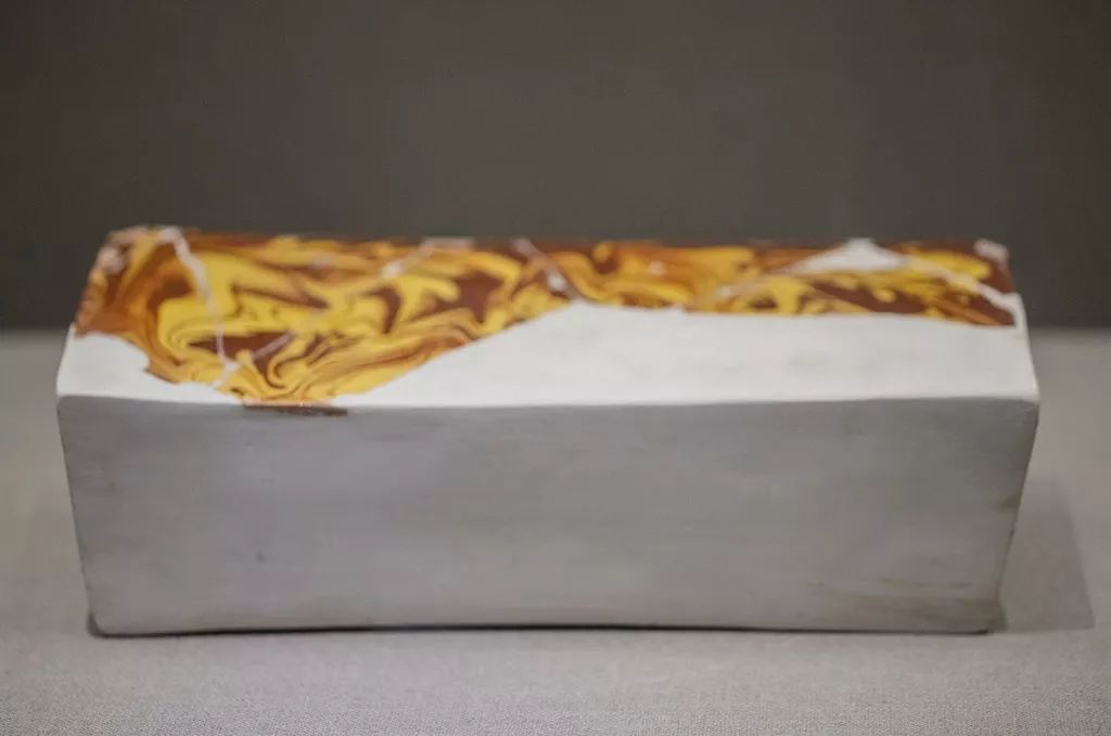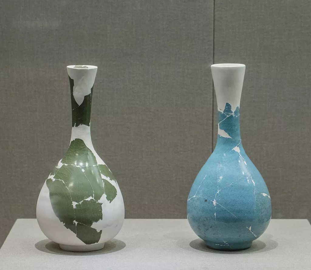 然后相绞、拉坯、制作成形,瓷胎上便出现色彩相间的纹理。由于绞揉的方式不同,纹理变化多端,类似树木年轮或花岗岩、羽毛纹等。等素坯干后先素烧,再罩淡黄釉、绿釉或透明釉等釉色二次烧成。