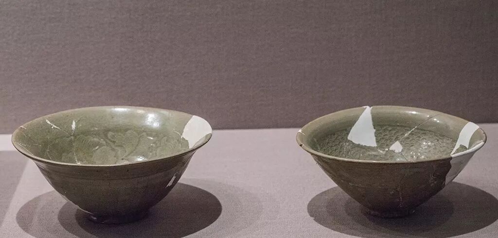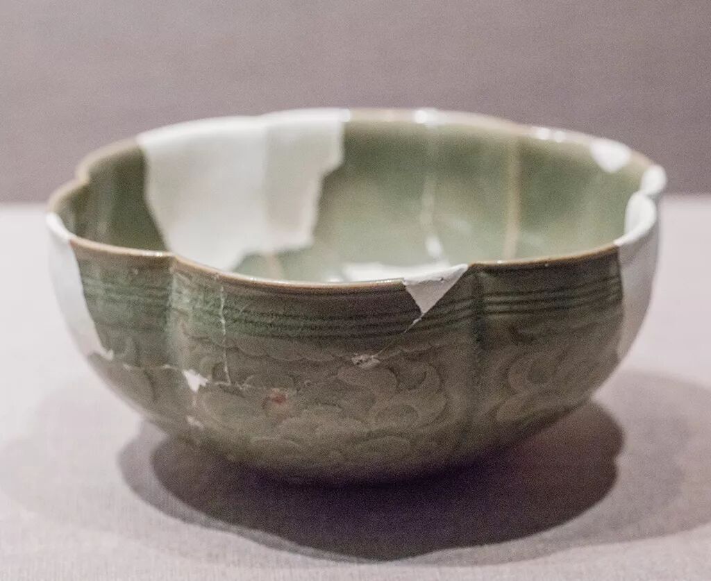 左:青釉花口瓜棱碗 金代 鲁山县段店窑文化研究所藏右:青釉花口瓜棱碗 金代 鲁山县段店窑文化研究所藏
