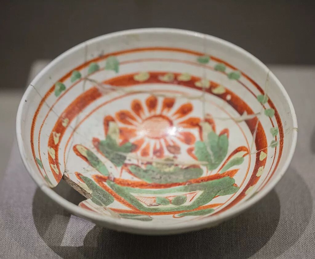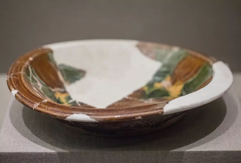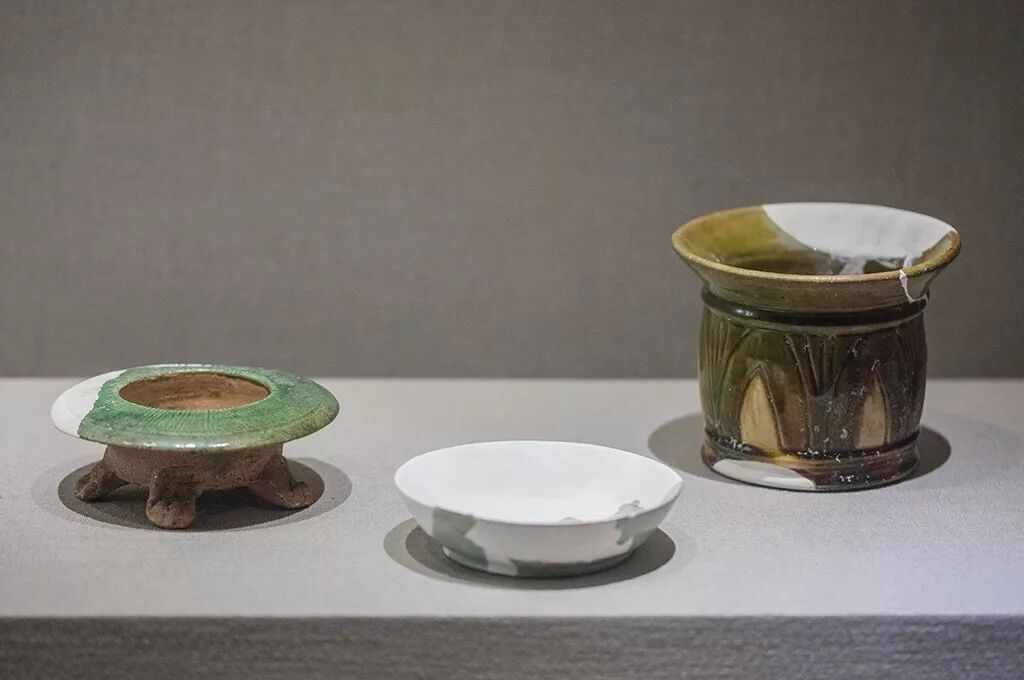 利用二种色料不易溶的原理,略加搅动后石于坯胎上再入窑烧成。其表面的特征似于绞胎器。胎上多施以较厚的化妆土,施厚釉、釉色鲜艳、纯正、润泽、填色规整。其装饰手法以划花为主,刻、剔为次,多为生活实用器。此时期,河南烧制三彩的主要窑口有鲁山段店窑、巩县芝田窑、禹县扒村窑、宝丰清凉寺窑等。