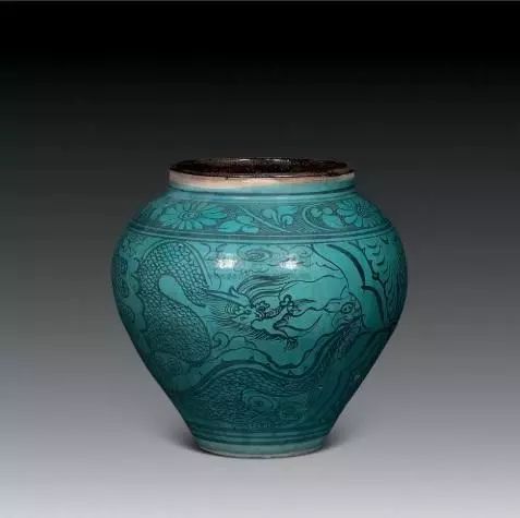 翠蓝釉 元代龙凤纹罐