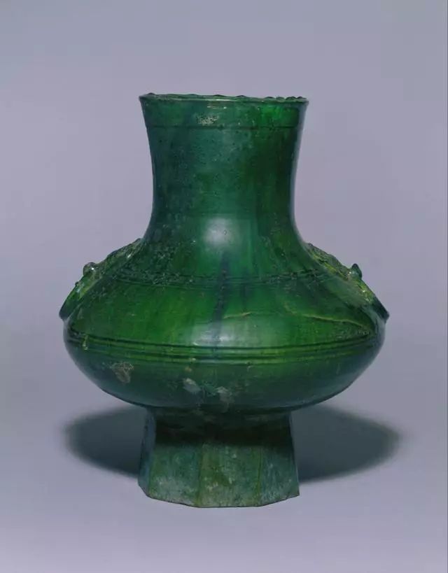 翠绿釉 铺首耳陶壶