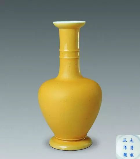 鸡油黄釉 清雍正弦纹瓶