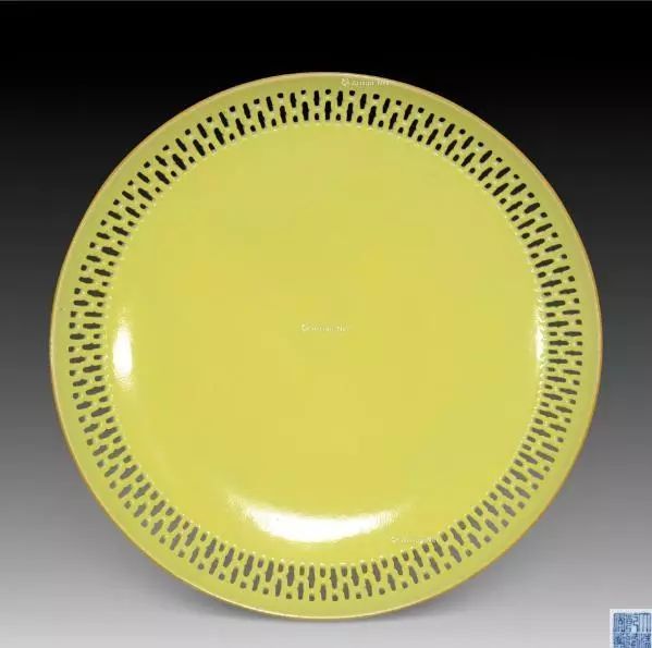 鹅黄釉 清乾隆玲珑瓷大盘