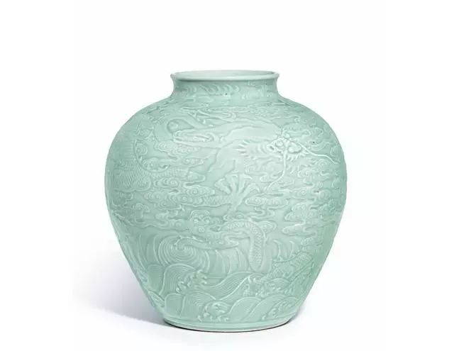 粉青釉 乾隆御製浮雕龙纹罐