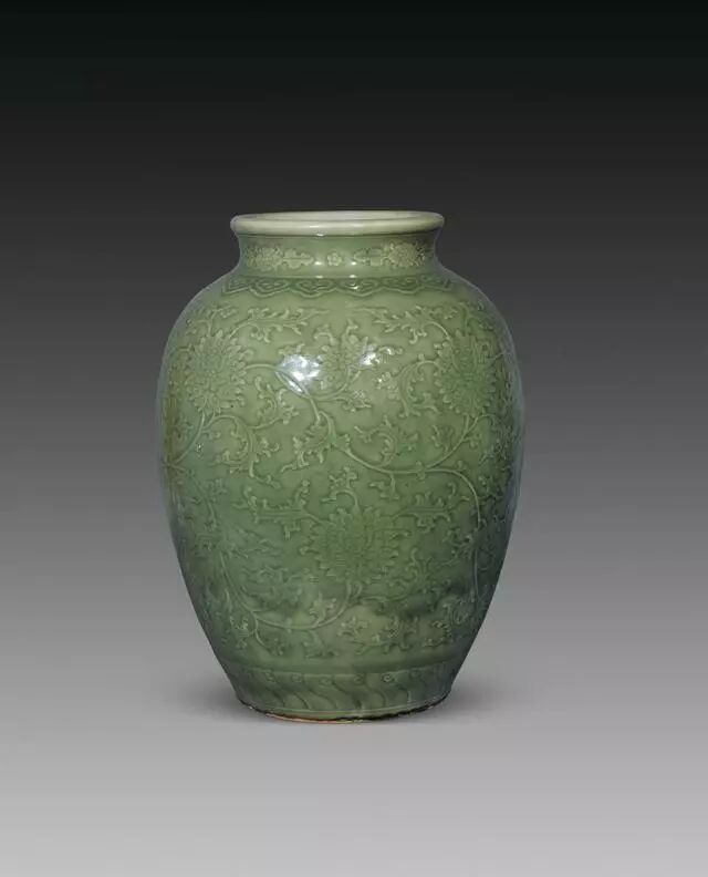 仿龙泉釉 清乾隆缠枝莲纹大罐