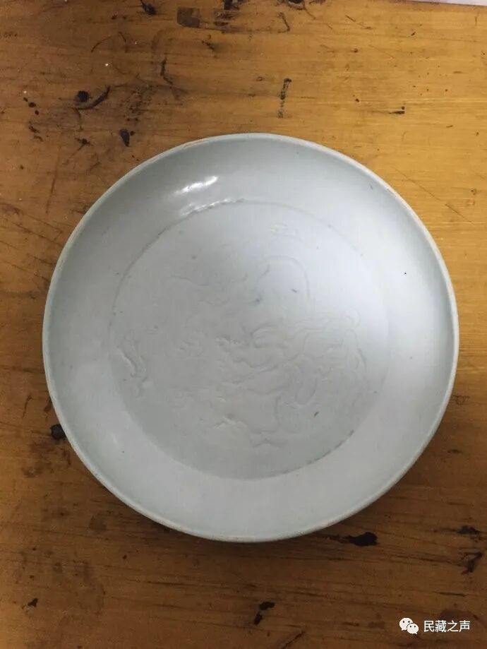 元卵白釉刻划龙纹盘,山东菏泽元代沉船出土