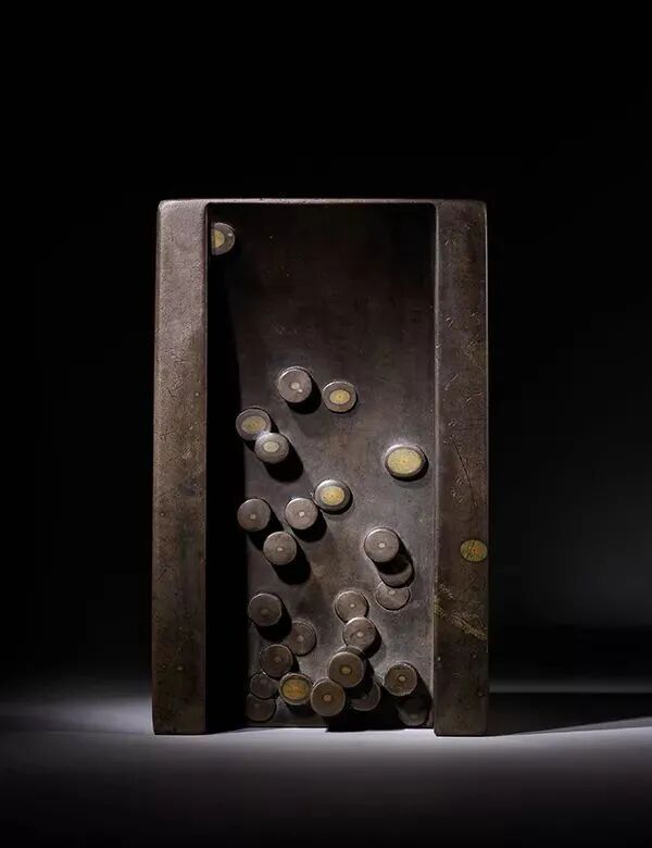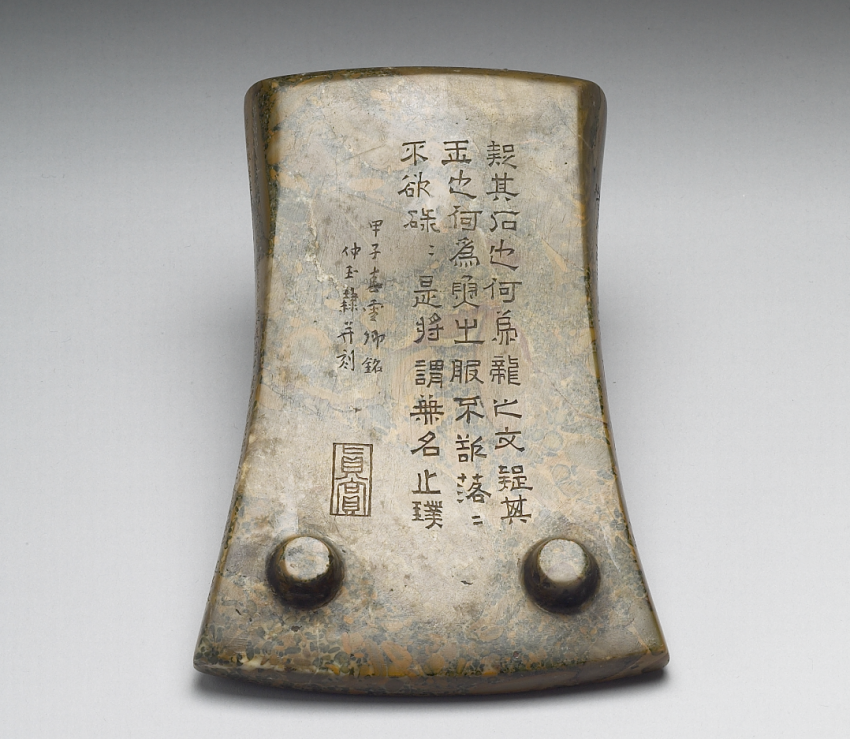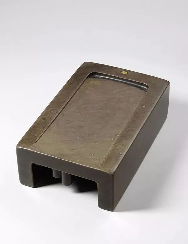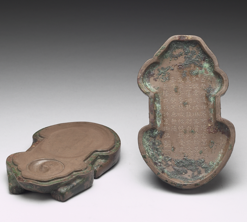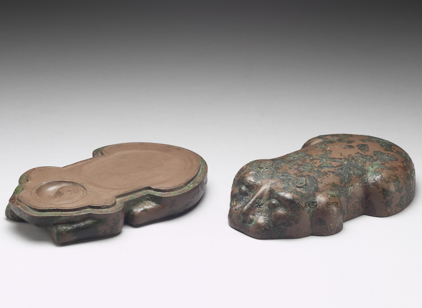 清 青铜钟式嵌澄泥砚台北故宫博物院馆藏
