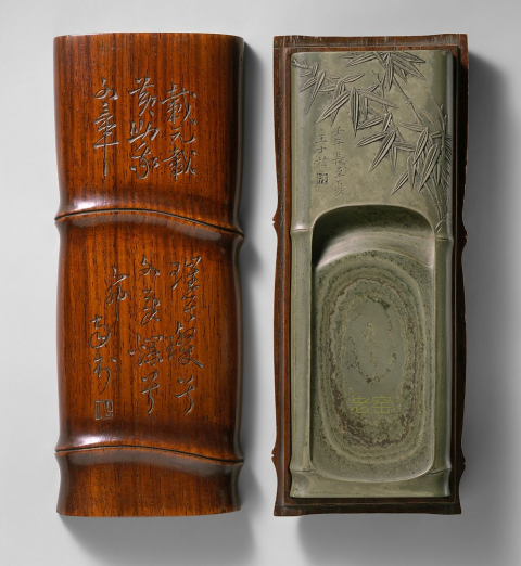 清 王士禛竹形绿端砚 美国大都会博物馆藏