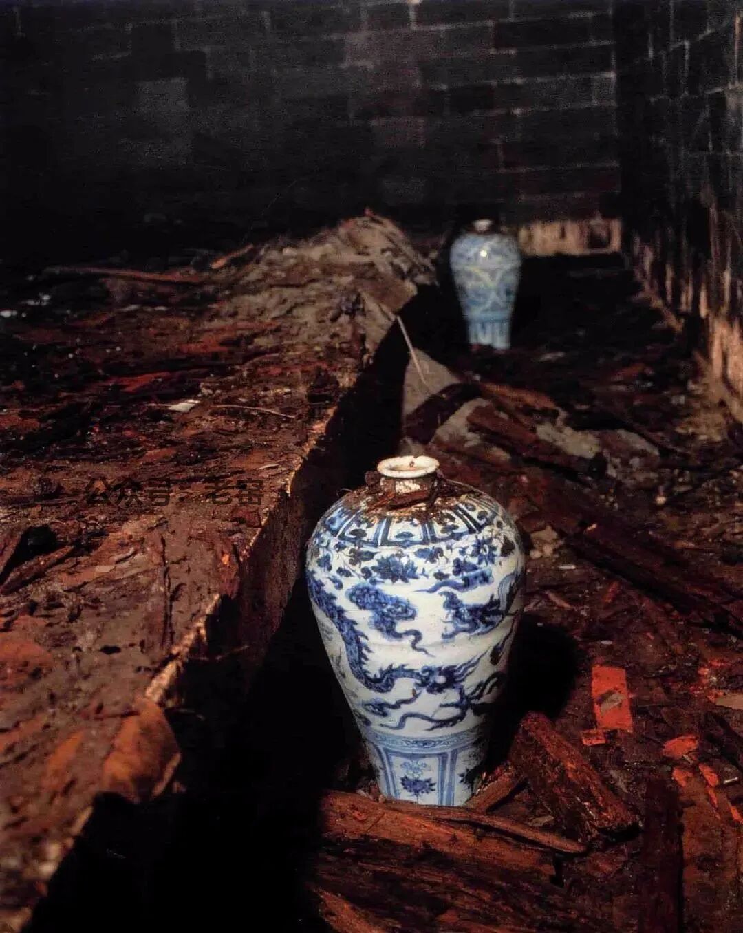 两件梅瓶分别放置在墓主人棺床的头部位置,一件属于郢靖王,一件属于王妃郭氏。郢靖王朱栋是明太祖朱元璋的二十四子,郢靖王墓是他与王妃郭氏的合葬墓。
