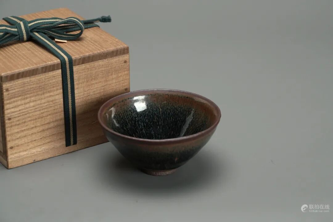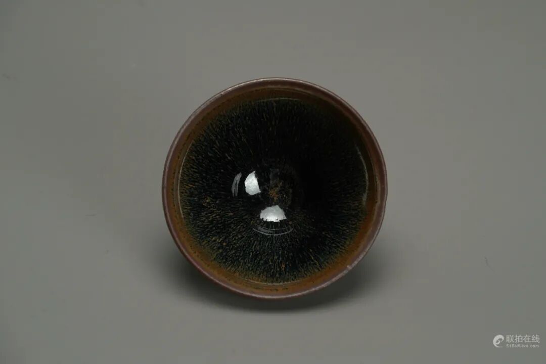 唐物天目包含建窑的禾目天目,油滴天目,耀变天目,俗称建州三天目。其中禾目天目就是我们今天所说的兔毫水吉建盏。因为其烧造时釉水比较厚重,产生流动,形成特殊的纹理而得名。兔毫盏自古以来便是建盏中的名贵釉色,宋徽宗在其著作《大观茶论》中曾经提到:盏色贵青黑,玉毫条达者为上。此件盏造型规整,釉水莹润,乃收藏使用佳品。