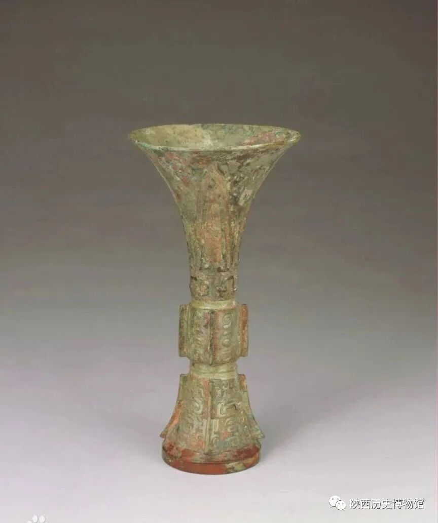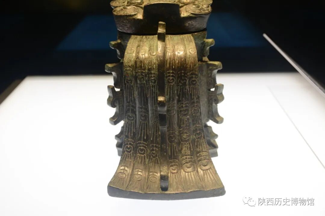 日己觥的材质是青铜,青铜是红铜、锡、铅的合金,与纯红铜相比,具有熔点低、硬度高、韧性强、易塑形的优点。大部分青铜器铸造出来的颜色呈金黄色,青铜在汉代以前的史料典籍中被称为“金”,所以铸在青铜器上的文字被为“金文”,研究青铜器和石刻的学问为“金石学”。由于许多青铜器长期被埋藏在地下,原材料当中的铜与水、空气、微生物等发生复杂的化学反应后,形成表面的锈,这也就是为什么我们今天看到大部分青铜器是青绿色的。不过在陕西历史博物馆还有一件颜色保存相对较好的青铜器哦~