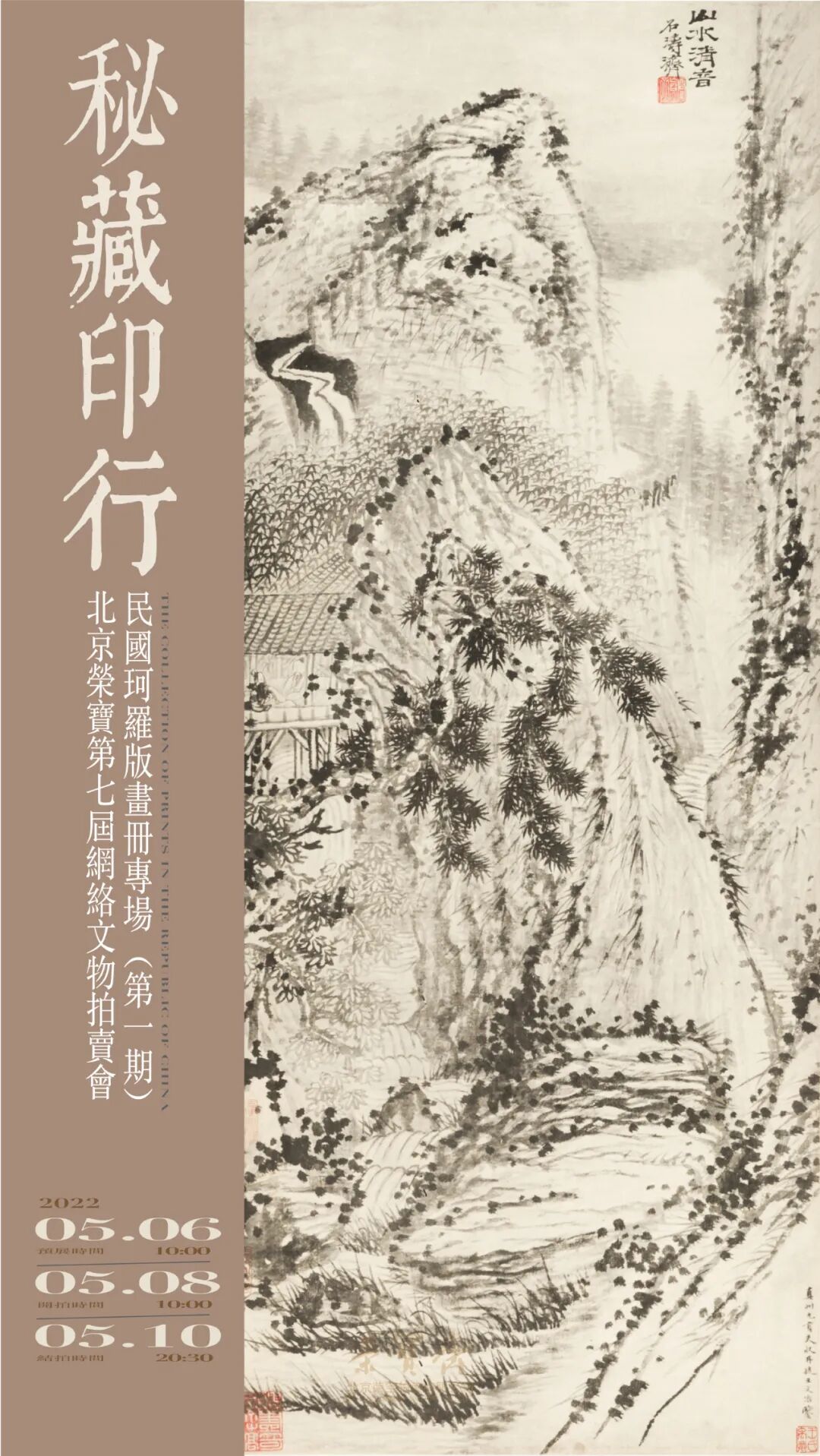 北京荣宝第七届网络文物拍卖会——秘藏印行·民国珂罗版画册专场(第一期)将于5月6日10:00—5月8日10:00开启线上预展,并于5月8日10:00开拍,5月10日20:30结拍。