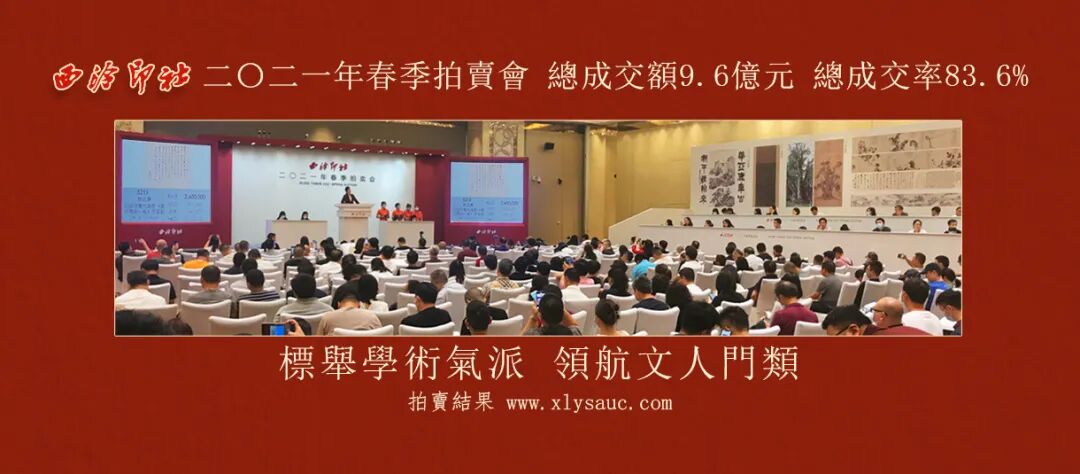 敬请登录西泠拍卖官网www.xlysauc.com、微信公众号“西泠拍卖”、新浪微博“西泠印社拍卖”了解最新资讯。