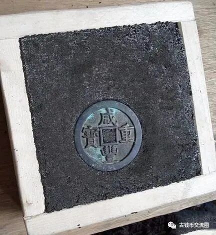 翻砂法铸钱,只需要将钱放入模具中,再将砂子填满压平,一个简单的模具就制作好了,比起范铸法要方便的多。