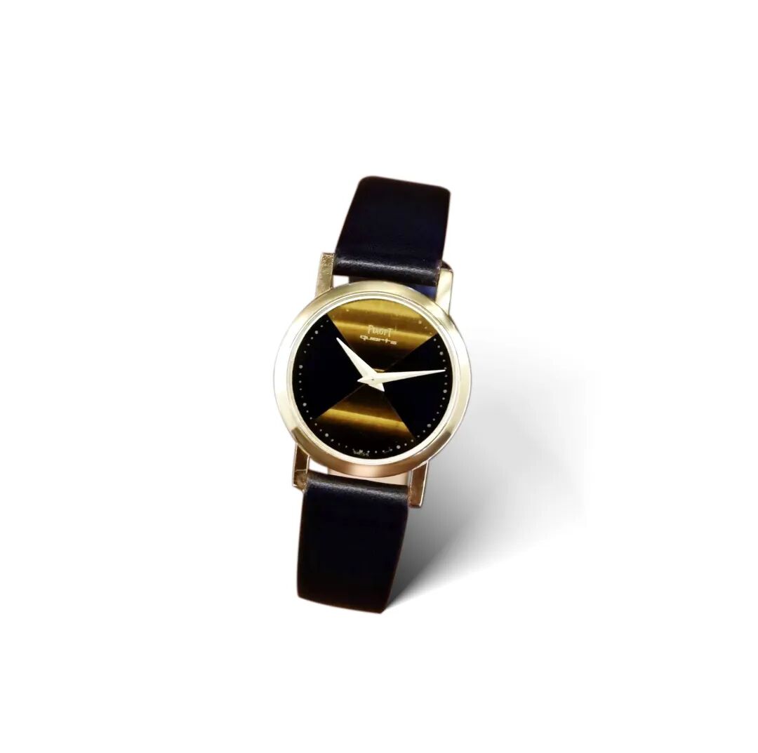 伯爵 18K黄金虎睛石黑玛瑙镶嵌石英腕表