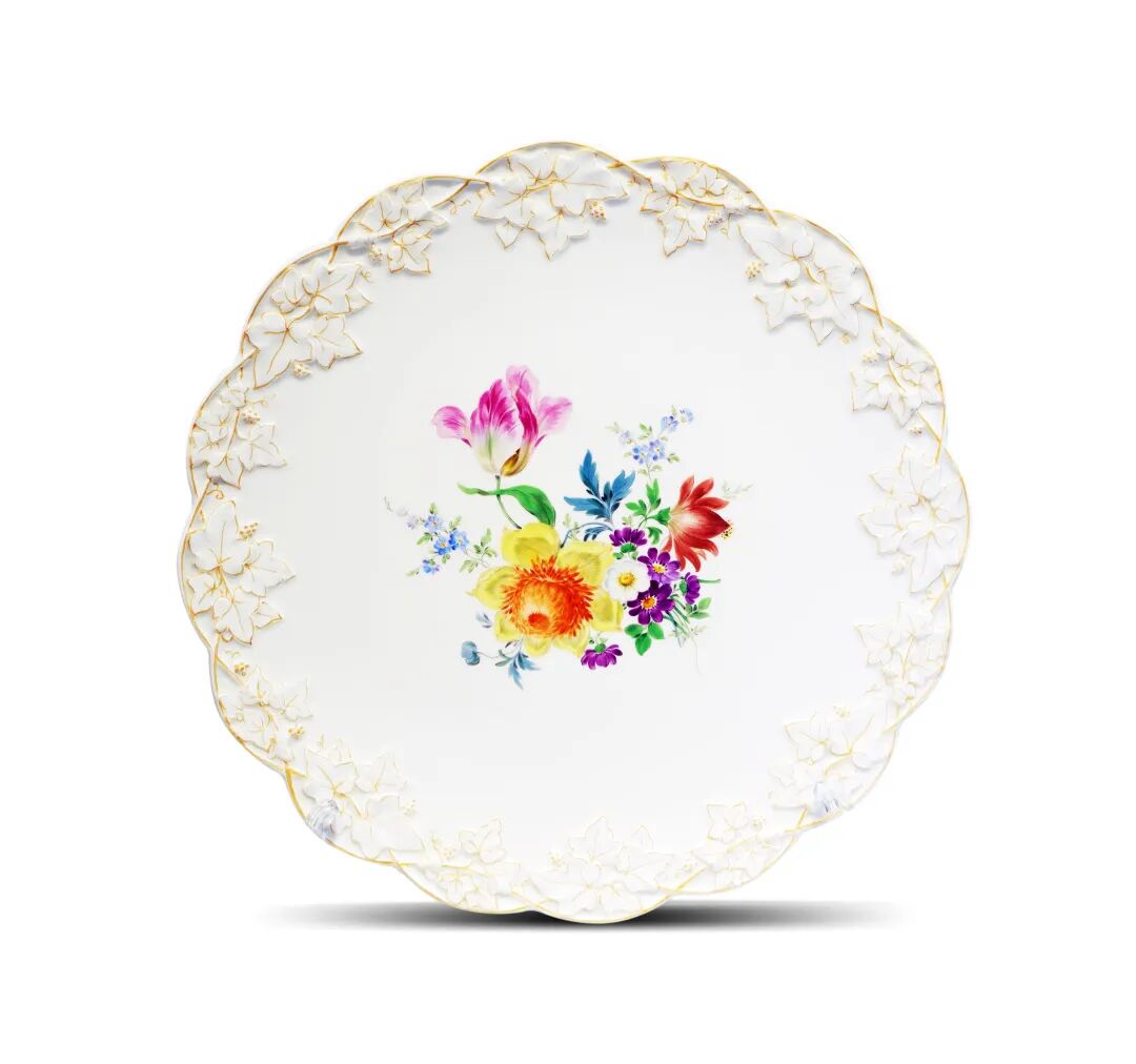德国 梅森Meissen 手绘描金花卉图案蛋糕盘