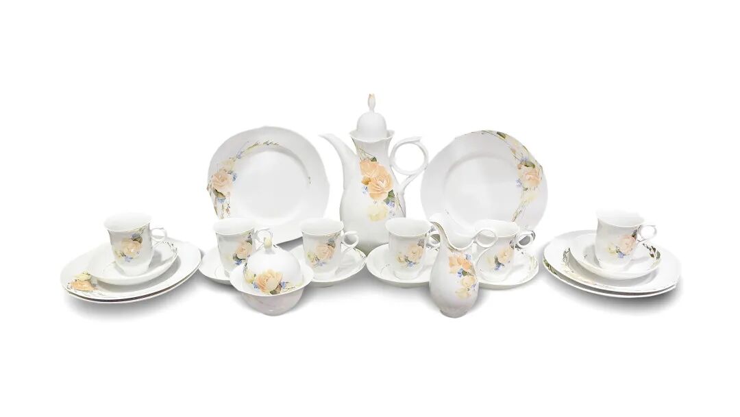 德国 梅森Meissen 波浪系列大剪裁手绘花卉6人位咖啡具一组21件