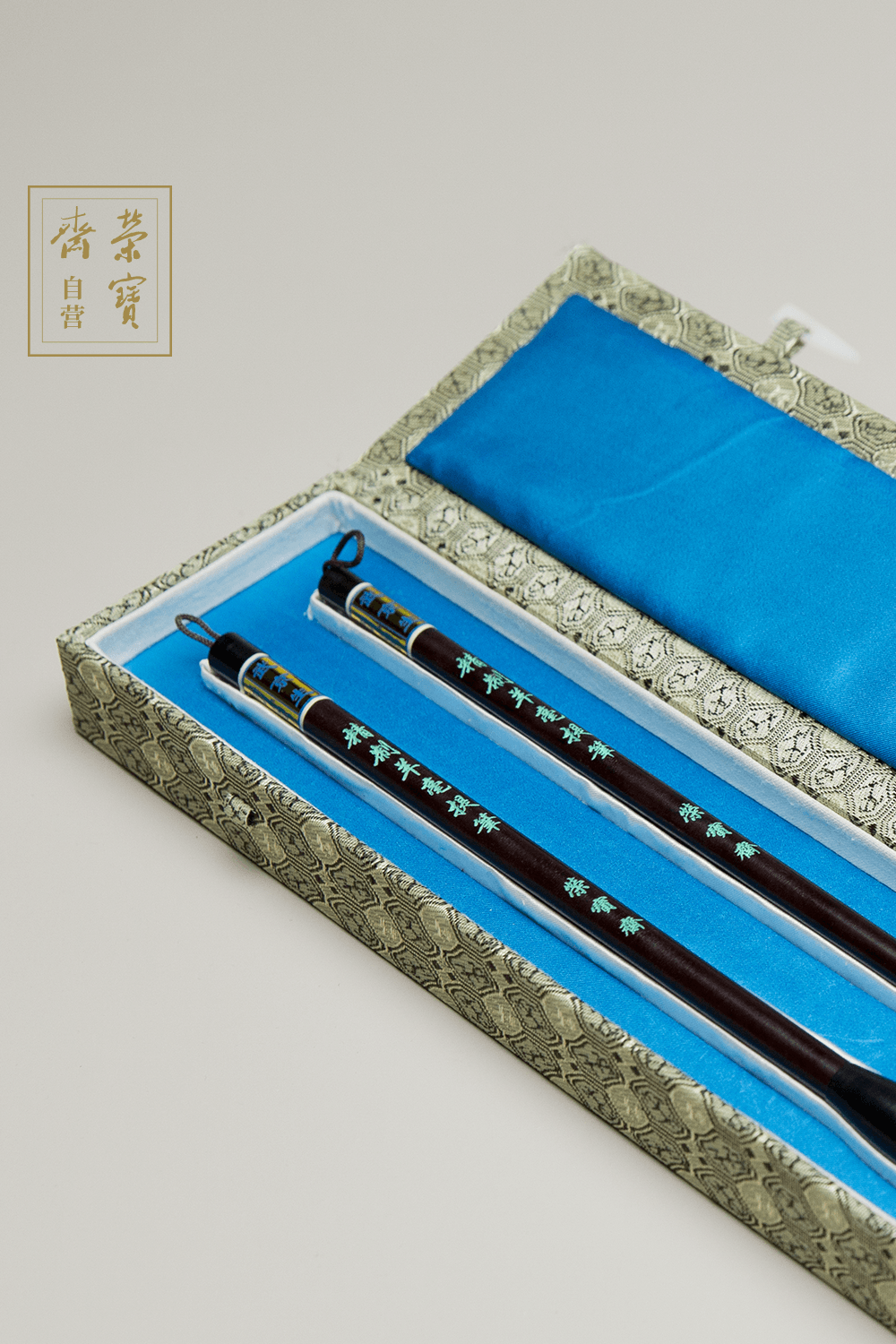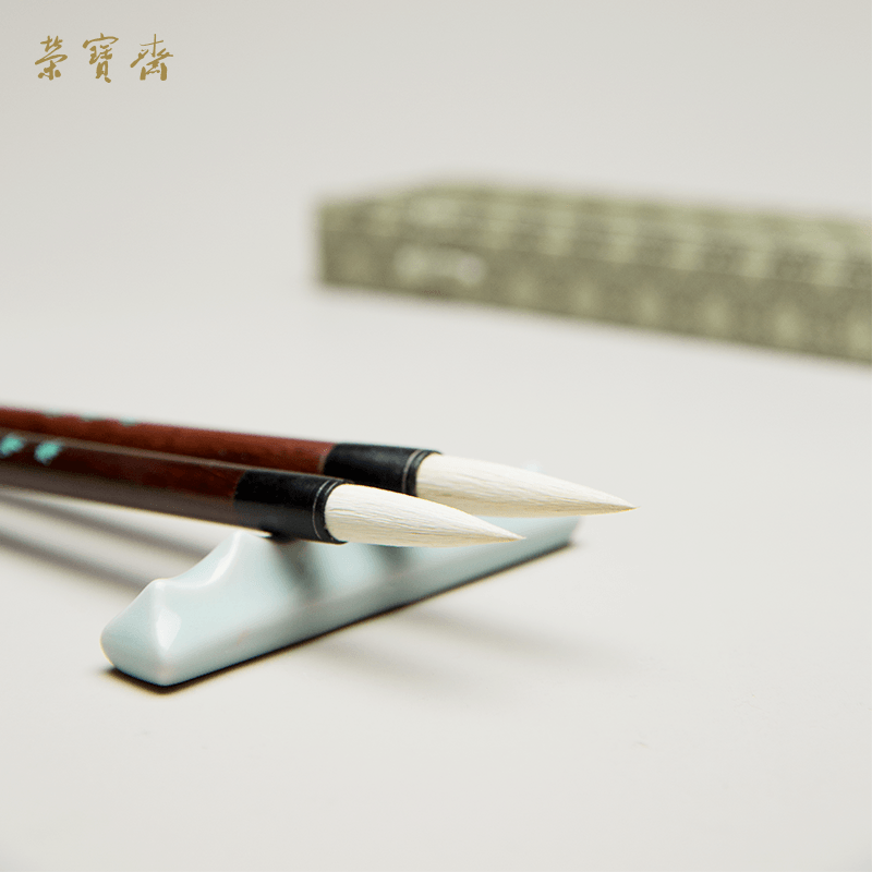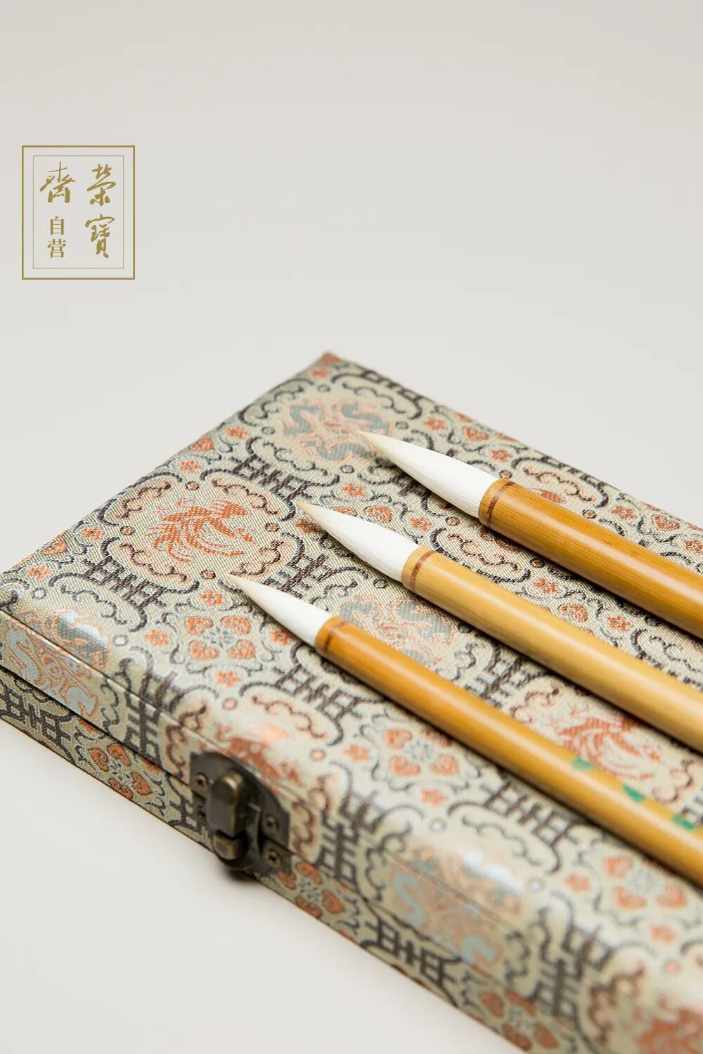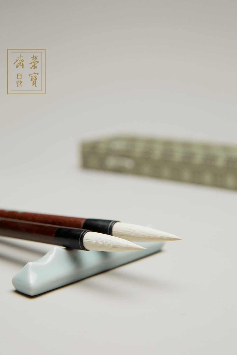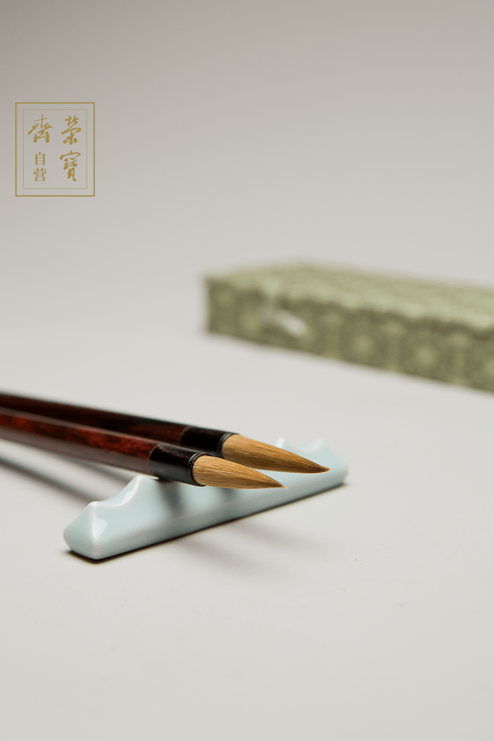荣宝斋定制云雪套笔笔尖选用优质狼毫及上等湖羊羊毫分别制成,毛质出众。适用于常见楷书、行书草书等,篆、隶亦可兼顾。笔杆为红木制成,外盒为纯手工制锦盒。