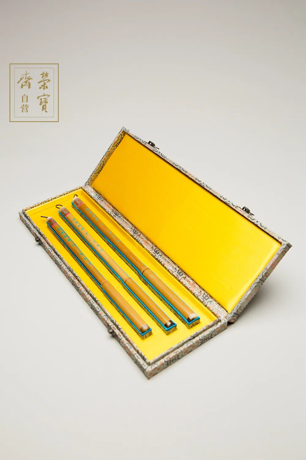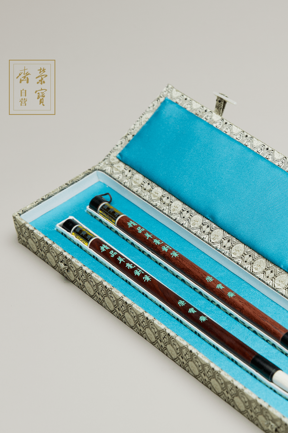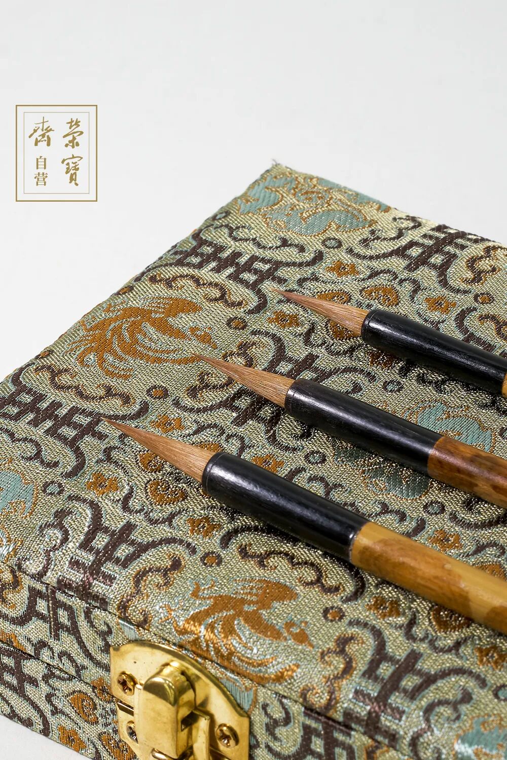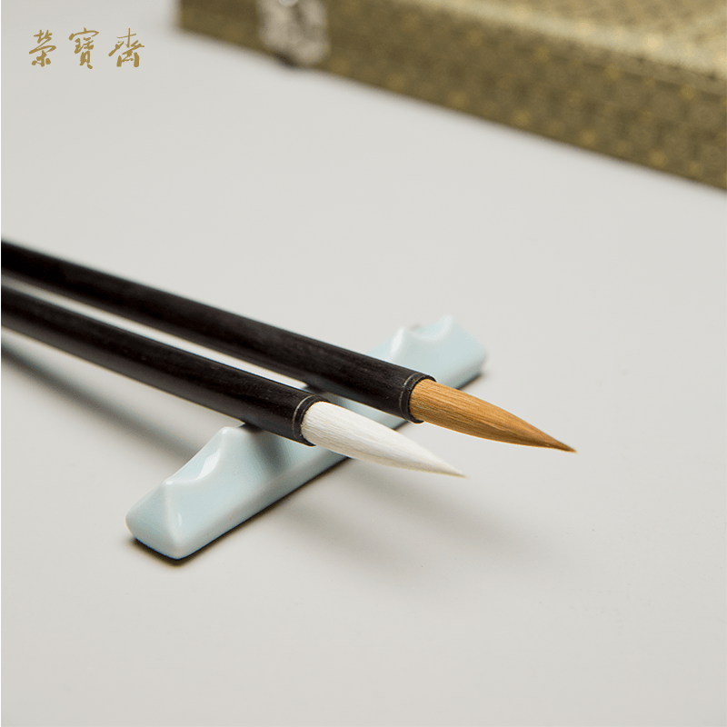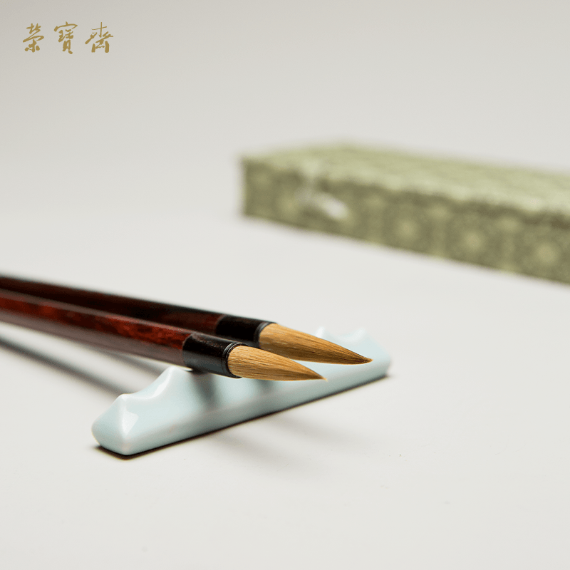 荣宝斋定制云雪套笔笔尖选用优质狼毫及上等湖羊羊毫分别制成,毛质出众。适用于常见楷书、行书草书等,篆、隶亦可兼顾。笔杆为红木制成,外盒为纯手工制锦盒。