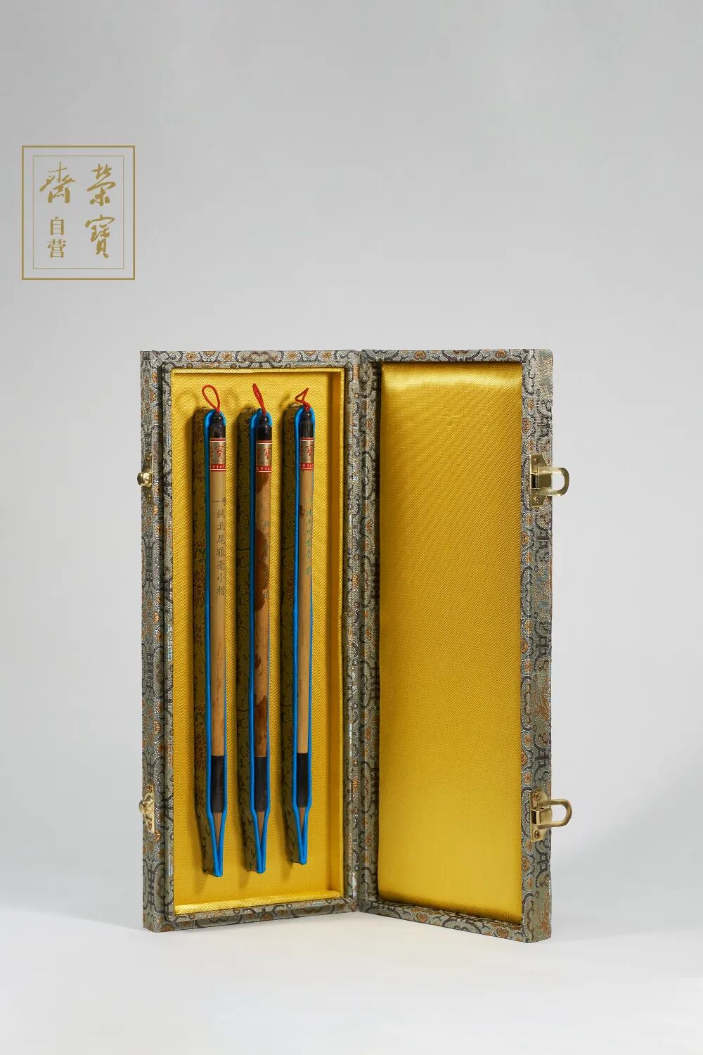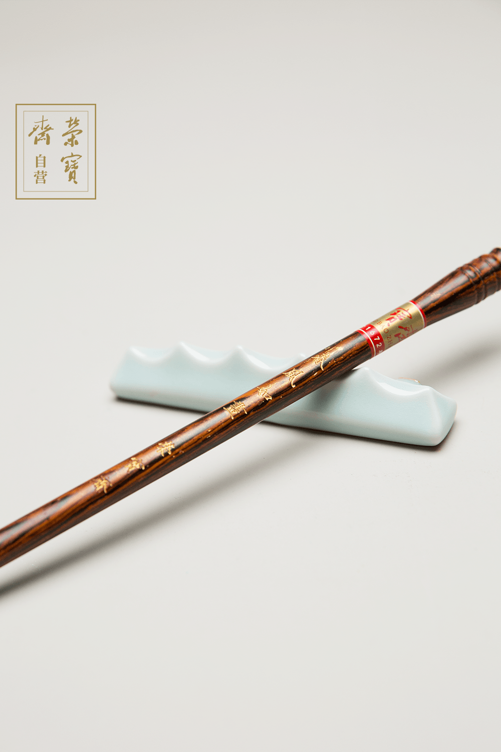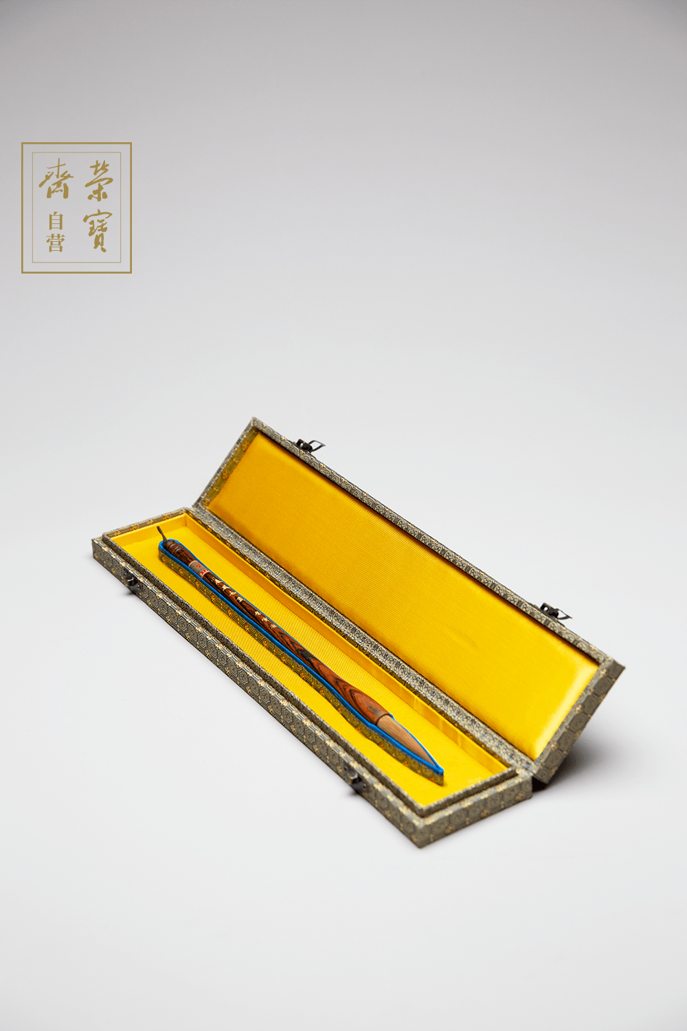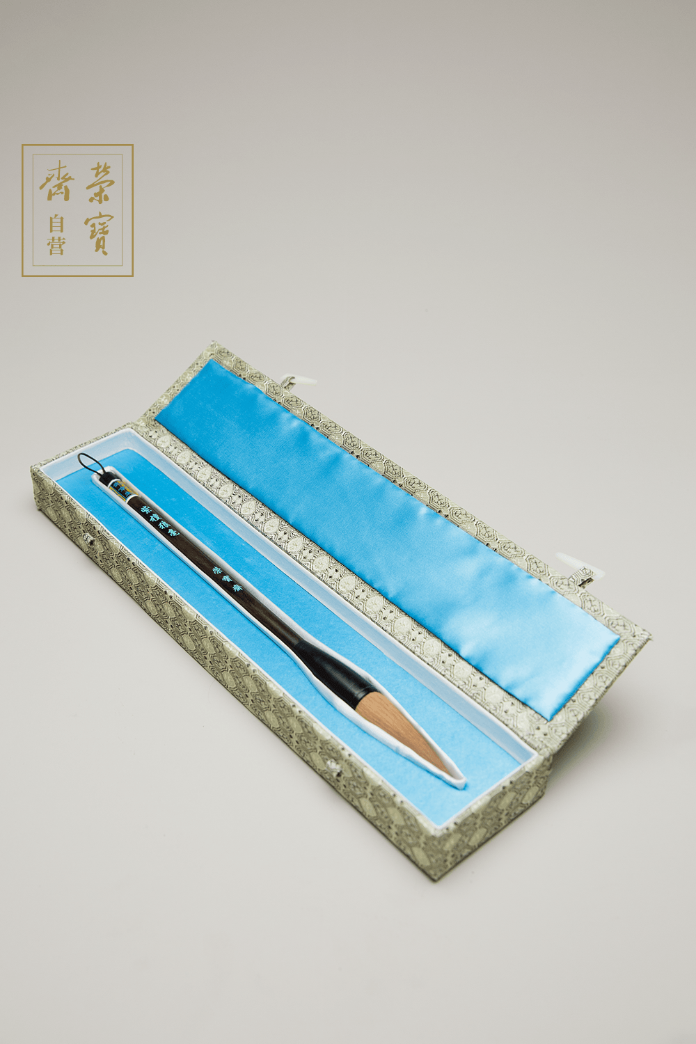 荣宝斋定制紫檀狼毫笔笔尖以狼毫为主,配以多种辅毫,挺健宜用。适用广泛,质量可靠,久经市场考验。红木笔杆刻字填青,用料考究,字体大气。笔斗及挂头镶嵌牛角,遥相呼应,精工细作。纯手工制作蓝囊锦盒,更好衬托笔的质感,配色传统典雅。