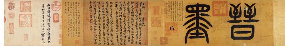 无巧不成书,时间过去六年之后,在2003年嘉德征集拍品的过程中,《出师颂》的前半段神奇地出现了。这一段上有隋人书《出师颂》、乾隆皇帝的御笔、大书法家米友仁的题跋。这简直太神奇了,如果人生能过碰到这种事,那真是修来的福分,命中的缘。当然,这也是靠努力和水准,其实送来的原因就是因为知道嘉德古籍看得懂这东西,知道它的价值,就是慕名而来。