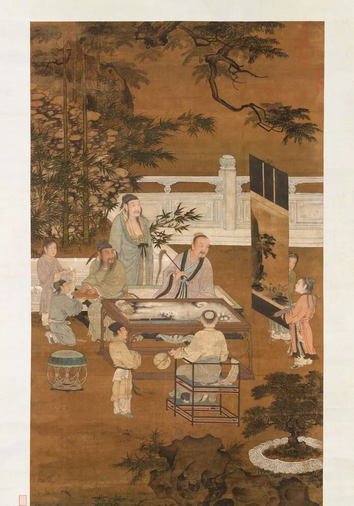 李公麟绘有《石鼎联句图》影响颇巨,这是根据韩愈《石鼎联句》序言及诗的内容转译的丹青。《石鼎联句》是韩愈一首相当奇特的诗,序言几如小说,情节引人入胜。“轩辕弥明”作为故事主角,与其他二人颖脱中含带讥讽的互动推助故事的发展。南宋林希逸的题画诗呈现出画面情态:“一几共三人,弥明喜师服。赓酬夜何其,漏箭在银烛。的传谁如豕腹胀,谁作龙头缩。始胡为颉颃,末胡为屈伏。彼既播和鼻撩天,避席徒局束。去者俄翩然,二子睡正熟。穸户问童效奴,晓云凄古木。质之昌黎篇,段段皆实录。”宋代以降,对这首诗的意旨争议极大,诗人与学者的考论构成了一个阐释研究系统,而画家与画论构成了一个审美欣赏系统,后者注重表现韩愈傲睨高吟的风神意态,在作品经典意义形成方面的作用不可忽视。
