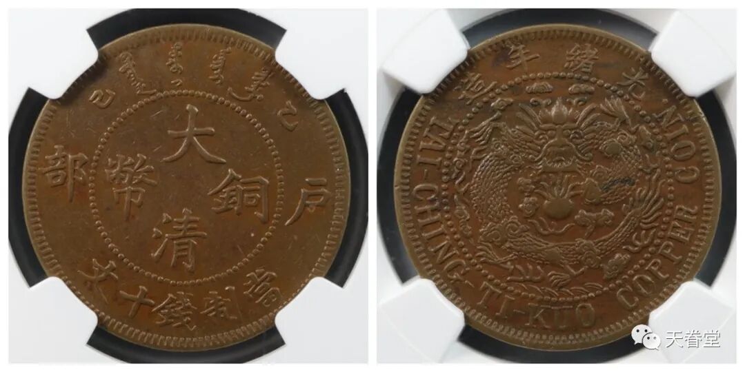 大清铜币乙巳十文新设计龙NGC-XF45BN 华夏古泉39600元