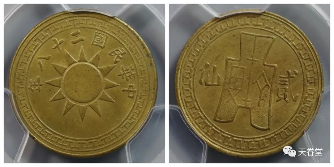 民国二十八年党徽贰仙 PCGS-MS65华夏古泉22550元