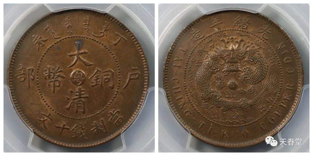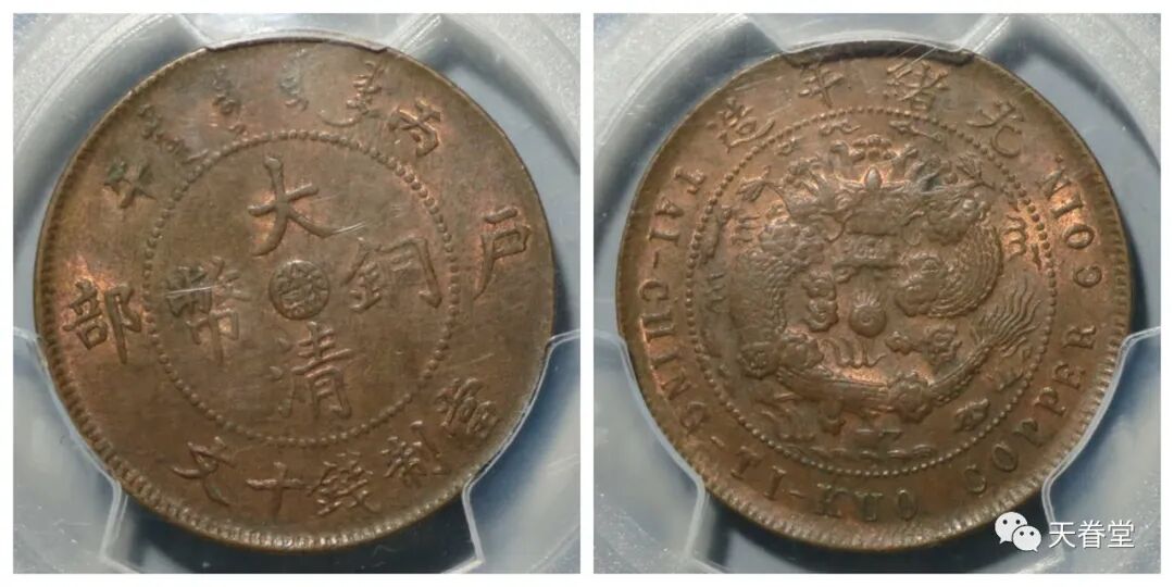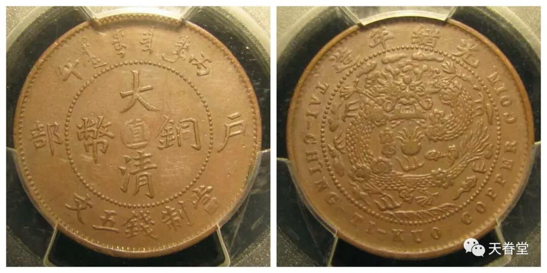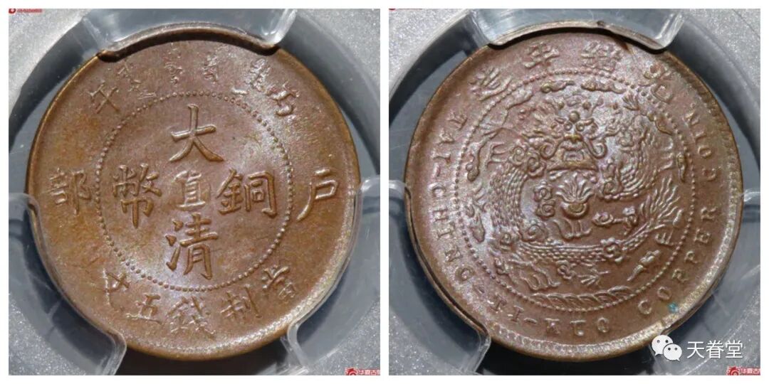 大清铜币五文中心直PCGS AU55 钱币天堂3090元