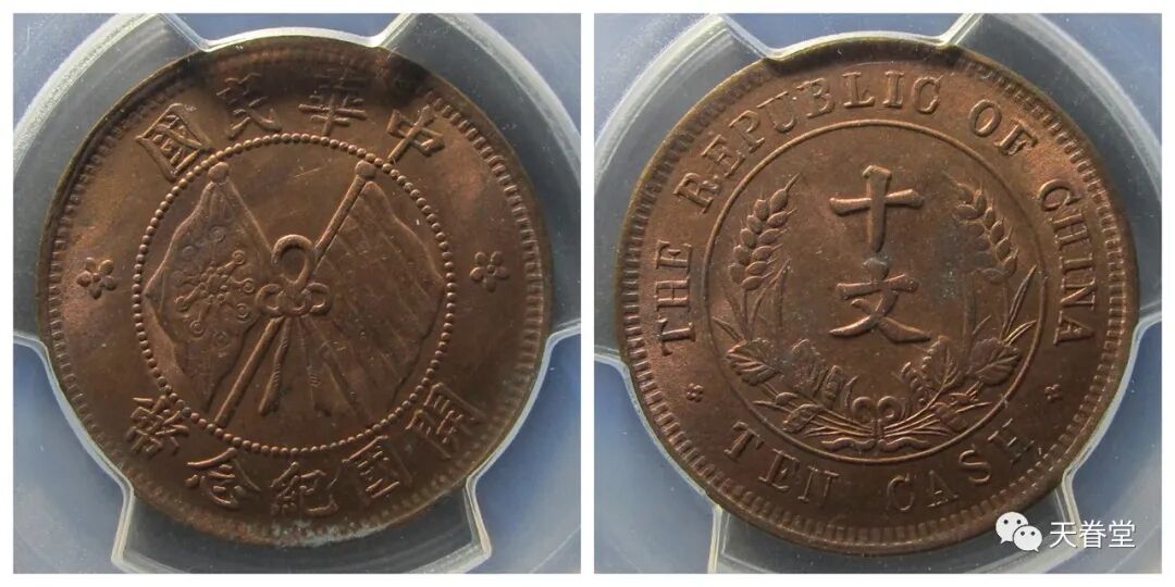 中华民国开国十文PCGS MS62RB 古泉园地910元