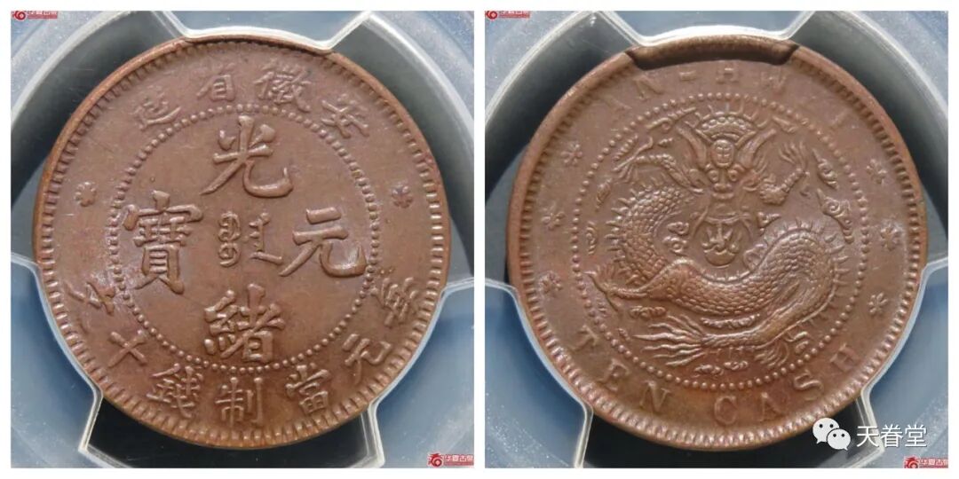 安徽省造光绪元宝十文王字龙PCGS-AU58 华夏古泉5390元
