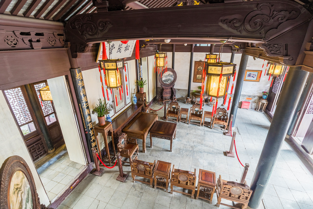 说到胡雪岩故居,就不得不提那间楠木厅,这个胡雪岩的红颜知己罗四太太居住之所,建筑面积445平米,厅内全部由金丝楠打造。60年长一厘米的金丝楠木,被如此奢华的铺陈装饰,真可谓世间少有。