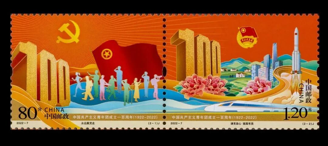 为庆祝共青团成立100周年,中国邮政于2022年5月5日特别发行《中国共产主义青年团成立一百周年》纪念邮票,1套2枚!![]()