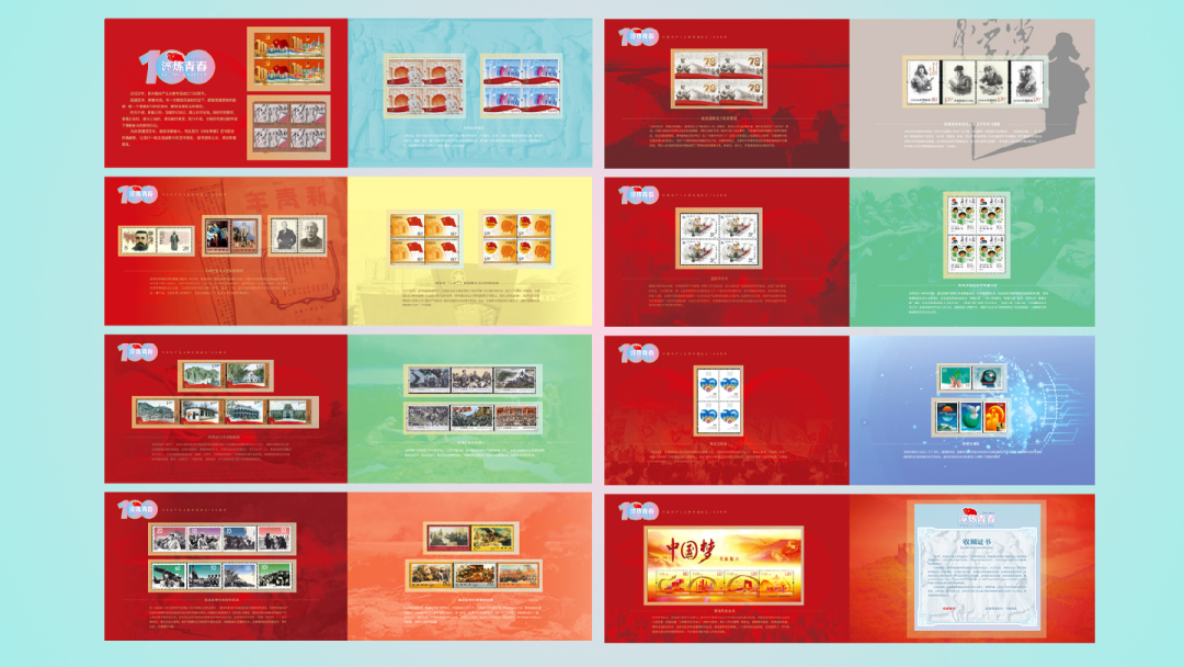 《淬炼青春》珍藏册套装内共含有套票、四方联、小全张、大版票等近百枚邮票!记录了这百年来的风风雨雨。点击查看样品展示,具体以实物为准↑↑