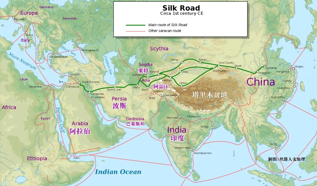 中亚的阿姆河和锡尔河正是丝绸之路上东西南北的通道,是文明的十字路口,或者商业的十字路口。