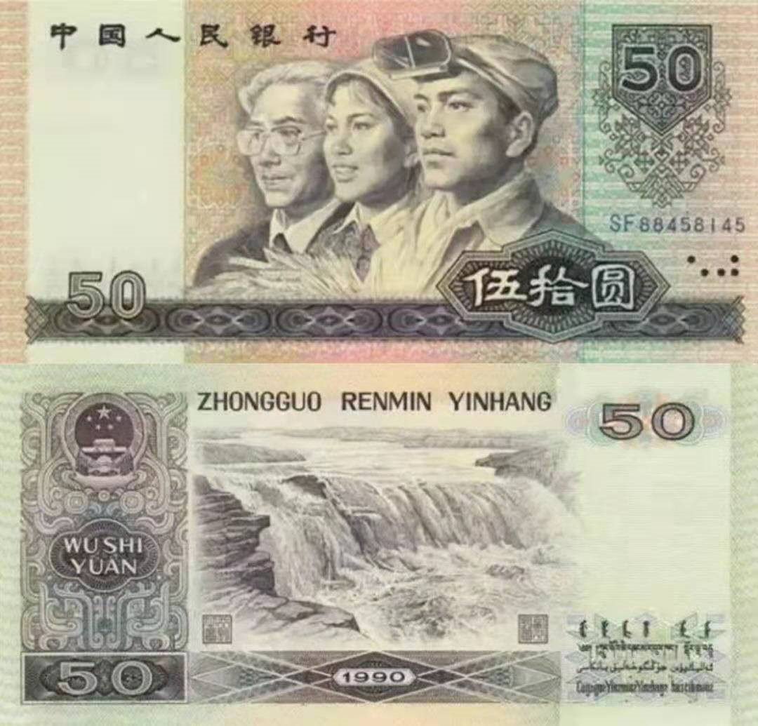 四版币50元纸币有两种年份,一种是1980年,被称为8050;另一种是1990年,被称为9050。1987年4月27日,为了适应改革开放后的货币需要、方便人民群众流通使用,中国人民银行发行了第四套人民币。首张发行的就是年号为1980年的50元纸币!但是8050防伪性能很差,而80年代的50元几乎是很多职工半个月的工资,属于超级大钞,一旦收到假货将会给人民生活带来巨大影响。所以8050仅仅发行了5年,就被换成了防伪性能更强的9050,增加了金属防伪线和无色荧光数字。