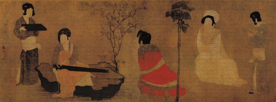 唐 调琴啜茗图