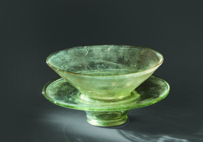 唐 素面淡黄色琉璃茶托茶碗