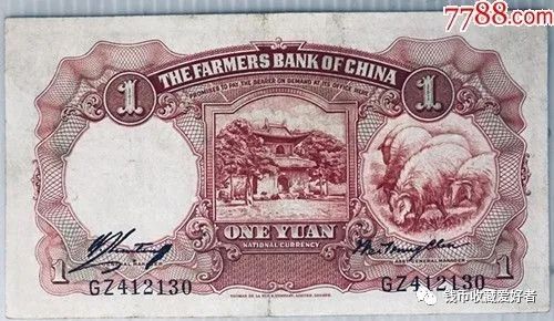 中国农民银行由豫、鄂、皖、赣四省农民银行组建。1933年3月,豫、鄂、皖、赣四省农民银行成立后,就开始发行一角、二角、五角三种辅币流通券。是年9月30日,开始发行一元券流通市面。