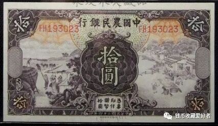 中国农民银行纸币有中国大业公司、美国钞票公司、英国德罗纳公司、大东书局等印刷。票面有农夫耕田、修渠打坝、插秧灌溉、收割打场、成粮入仓农耕图等。