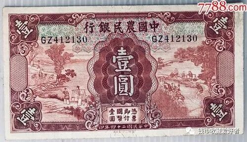 1934年11月14日,由四省农民银行进行改组成立中国农民银行开始发行纸币,当年发行的钞票有一角、二角、一元三种面额,在一元券中加印地名的有福州、兰州、长沙、西安、汉口。