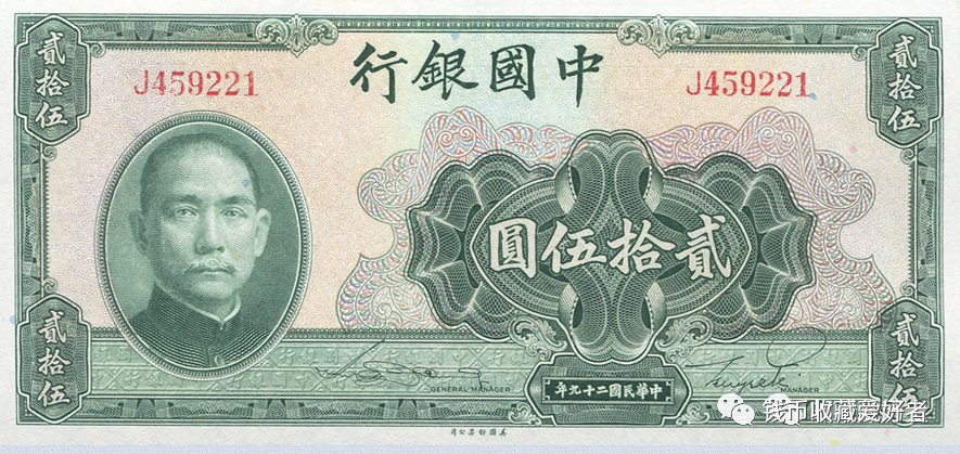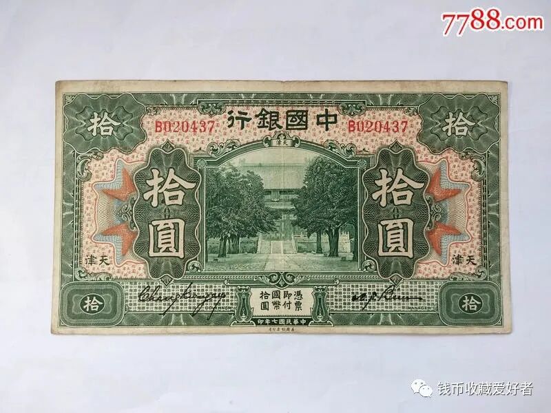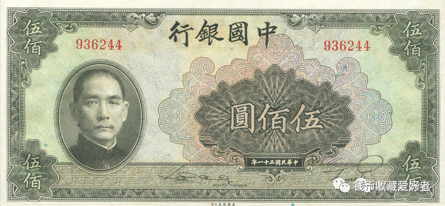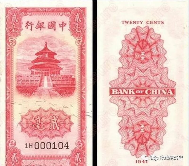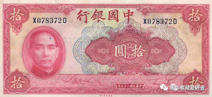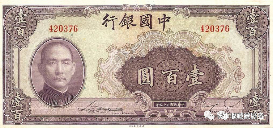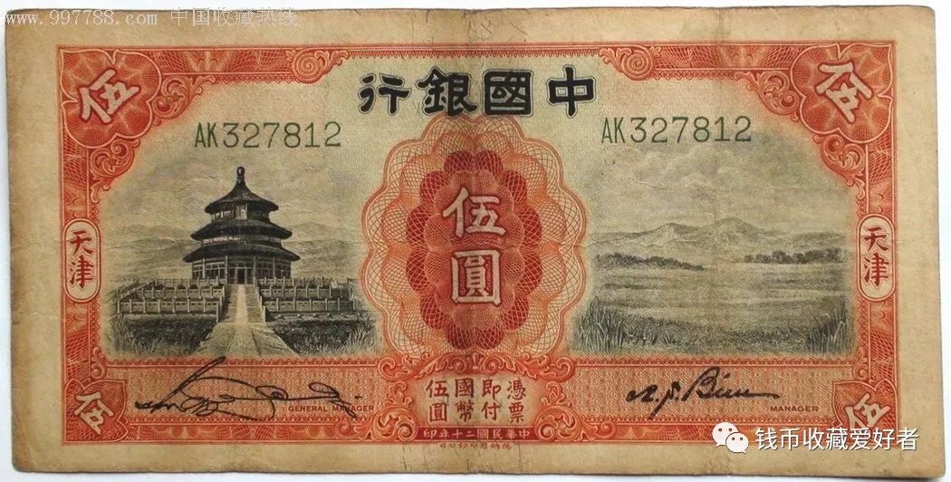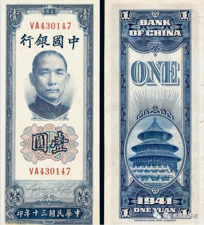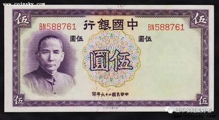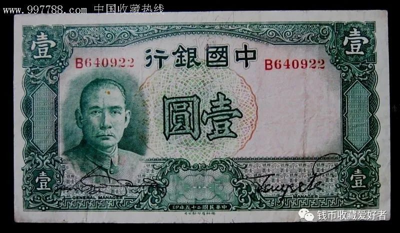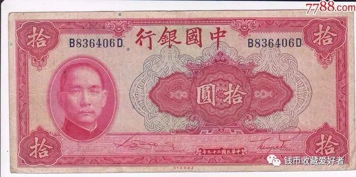 1935年(民国二十四年)11月4日,中国银行发行的纸币与中央银行、交通银行、中国农民银行的纸币相同,均属于法币。