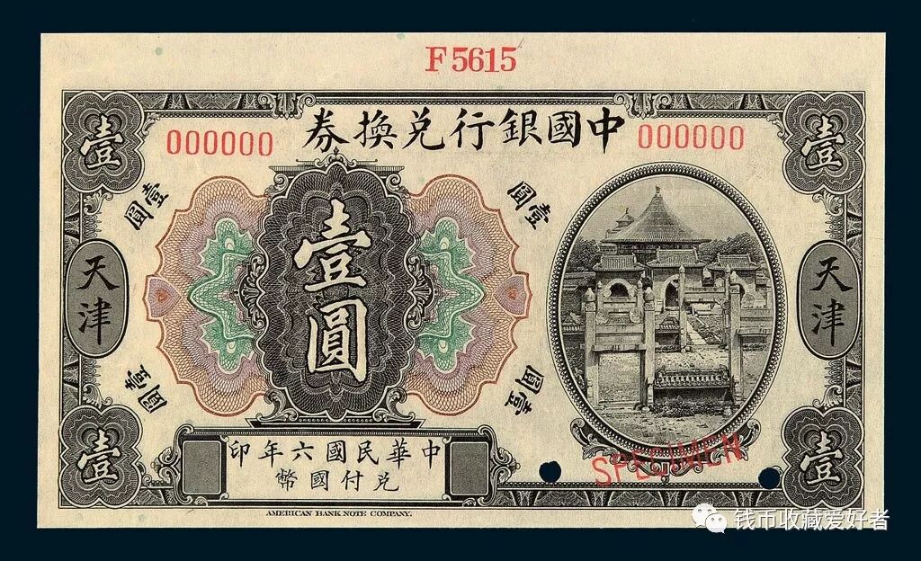 1918年由美国钞票公司印制的新版中国银行兑换券,“京改津”、“日改津”天津地名券,发行数额少。