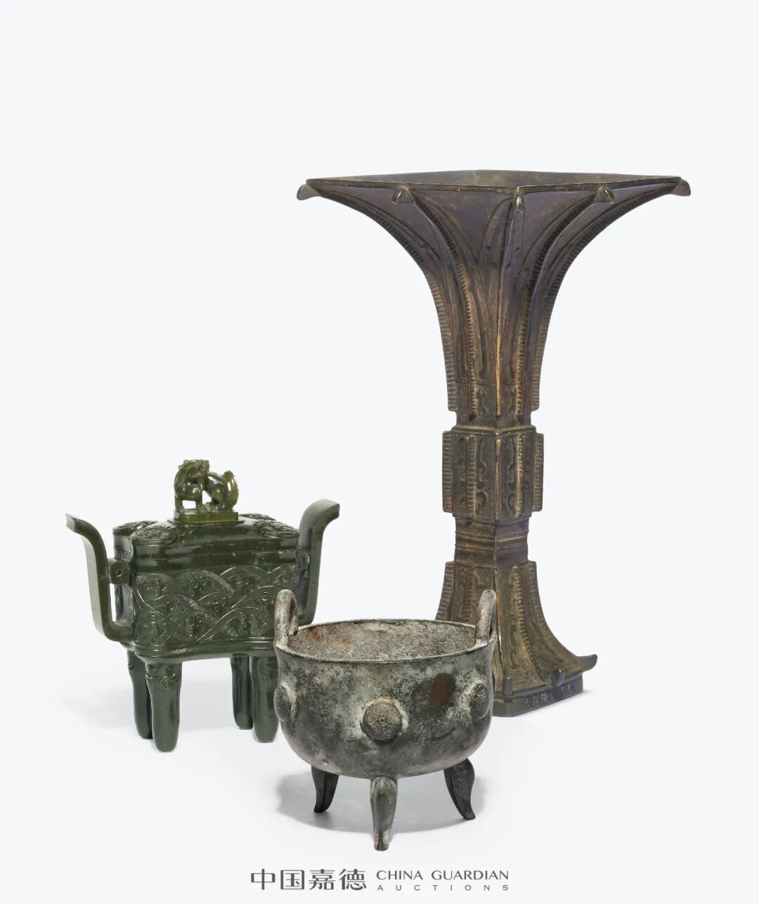 本次“瓷器玉器工艺品”专场,以“古色升香——明清仿古风”为开篇,由一批仿古制铜玉小品组成,正所谓“我非生而知之者,好古、敏以求之者也”。其后引出名家旧藏清代墨砚以及铜炉、竹木雕、珐琅、瓷器、玉器等多个门类的拍品。本场墨砚中有经亨颐旧藏墨,以及日本古砚研究专家相浦紫瑞旧藏砚,品质精良。玉器中两件翡翠作品,玉质雕工皆为上乘,性价比颇高。瓷器部分囊括元明瓷器、明末清初瓷器、清代官窑瓷器、晚清民国瓷器、单色釉文房小品等。玉器及工艺品中既有把玩小器、也有陈设文玩,适合不同收藏爱好者,探索其中。