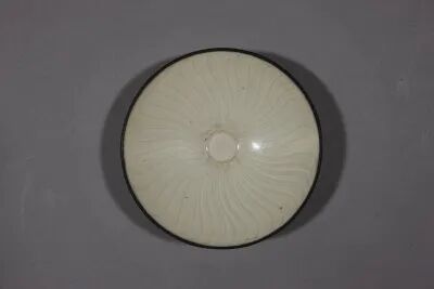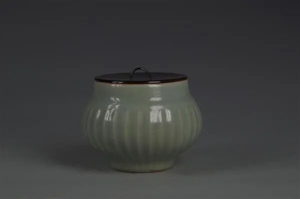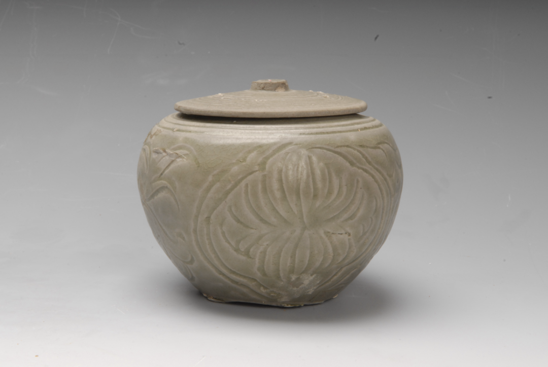 “采菊东篱下,悠然见南山”是东晋陶渊明诗中借自然景观所描绘的一幅悠然恬淡、超凡脱俗的境象。南山的美景与采菊时怡然自得的心境合成物我两忘的“无我之境”。采菊也包含着诗人超脱尘世,热爱自然的情趣。菊花开于暮秋,傲霜斗雪,不与群芳争艳的气节与古人的品行重合到一起。从古至今菊花不仅出现在诗文中,借以表达诗人不与时人同流合污的品质和超然独立的节操,还出现在书画之上,更融入于瓷器、玉器、金属器的装饰造型之中。此件北宋越窑菊瓣纹瓷盖罐便是菊花纹样饰于瓷器的实证。此种盖罐一般作为实用的盛储器,有的在古人生前是日常使用品,拥有者死后又随其入葬。