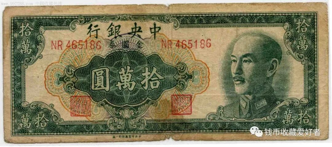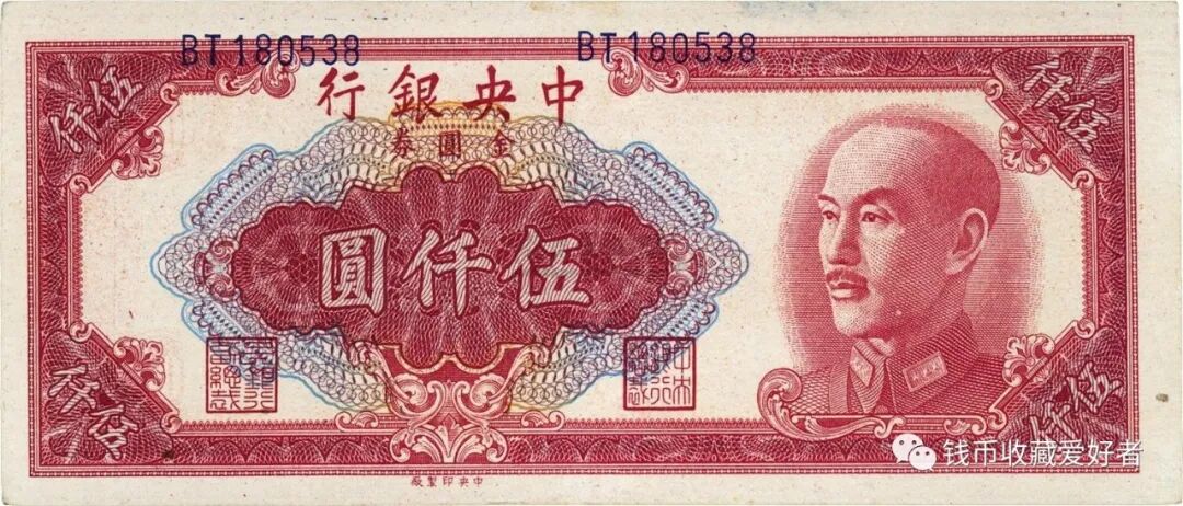 1948年发行金圆券。期间正式发行的券种有50种,另有未发行券12种。面额有一元、伍元、十元、二十元、五十元、一百元、五百元、一千元、五千元、一万元、五万元、十万元、五十万元、一百万元、五百万元等。
