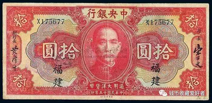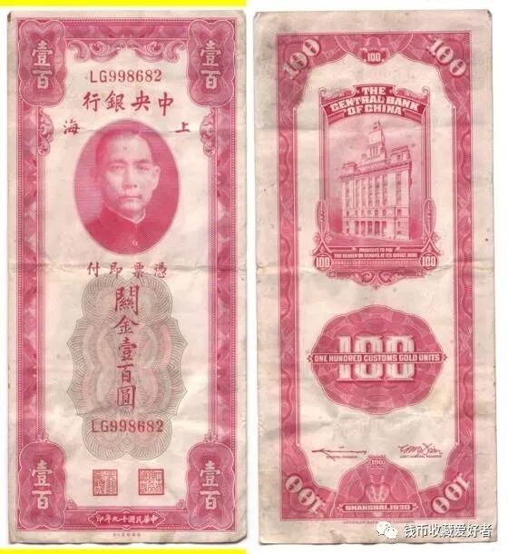 1929年,中央银行发行关金券。其面值分别为十分、二十分、一元、伍元、十元等五种。1942年2月1日,增加发行二十元、五十元、一百元三种。