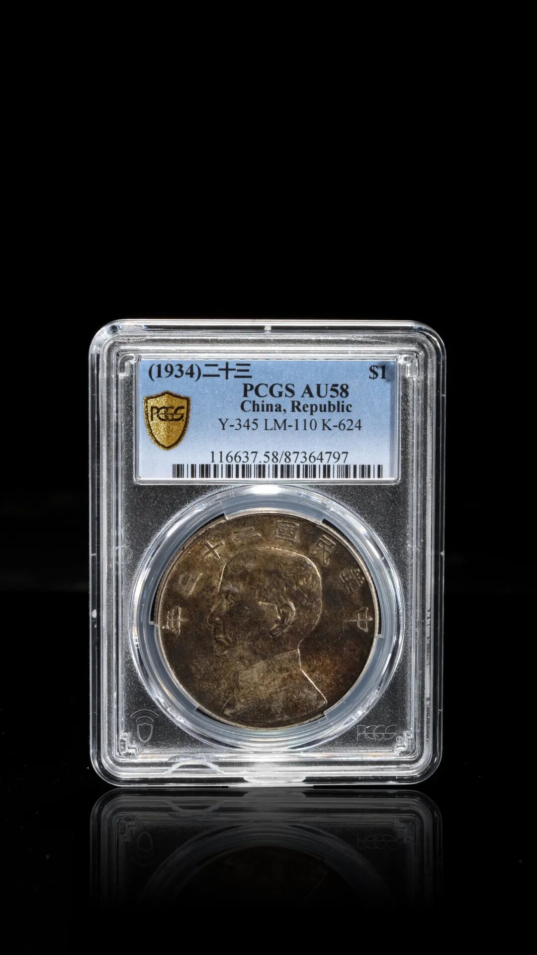 1934年民国二十三年孙中山像背帆船船洋银币一枚,PCGS AU58