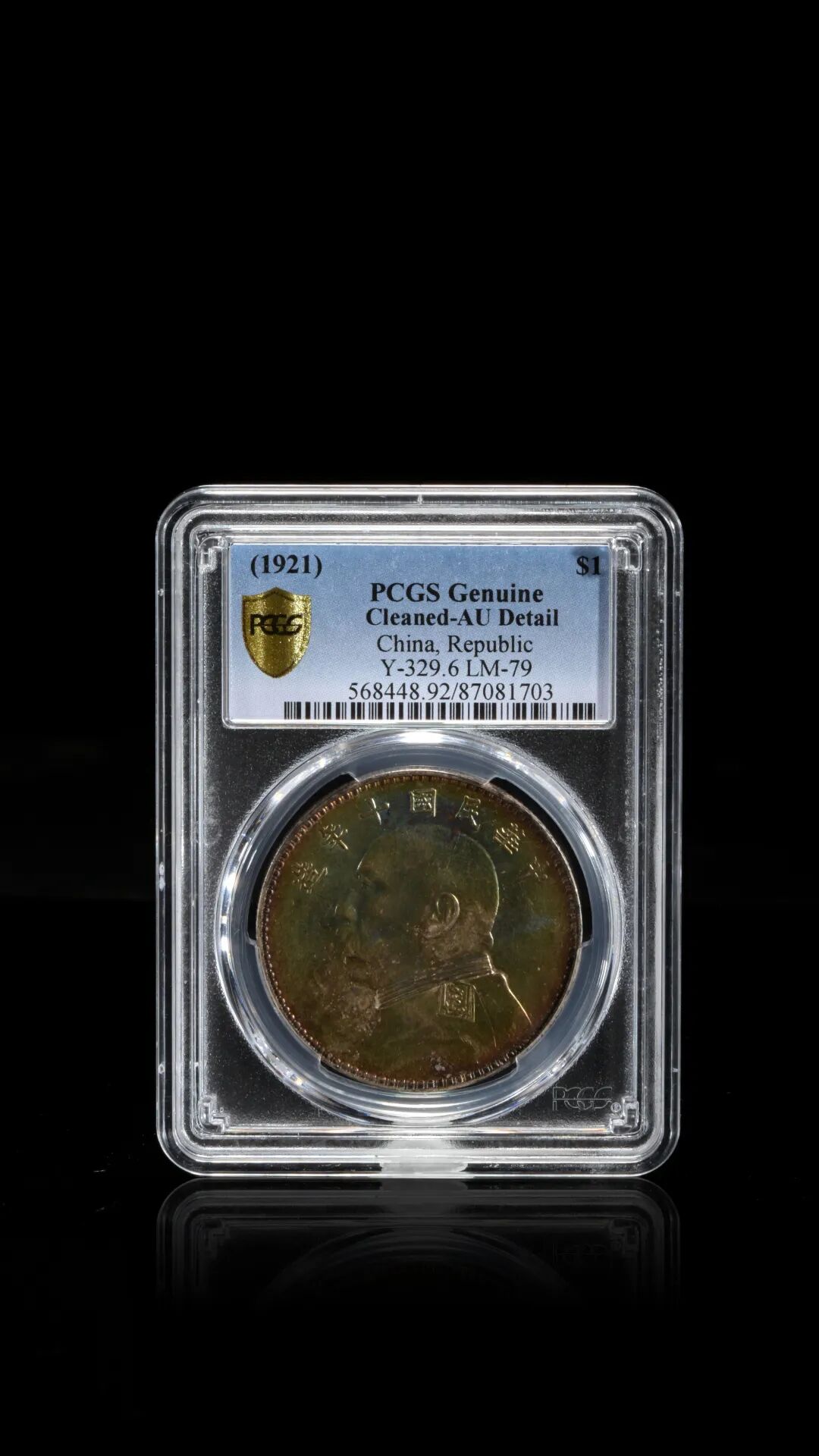 民国十年袁世凯像壹圆银币一枚,PCGS AU Detail