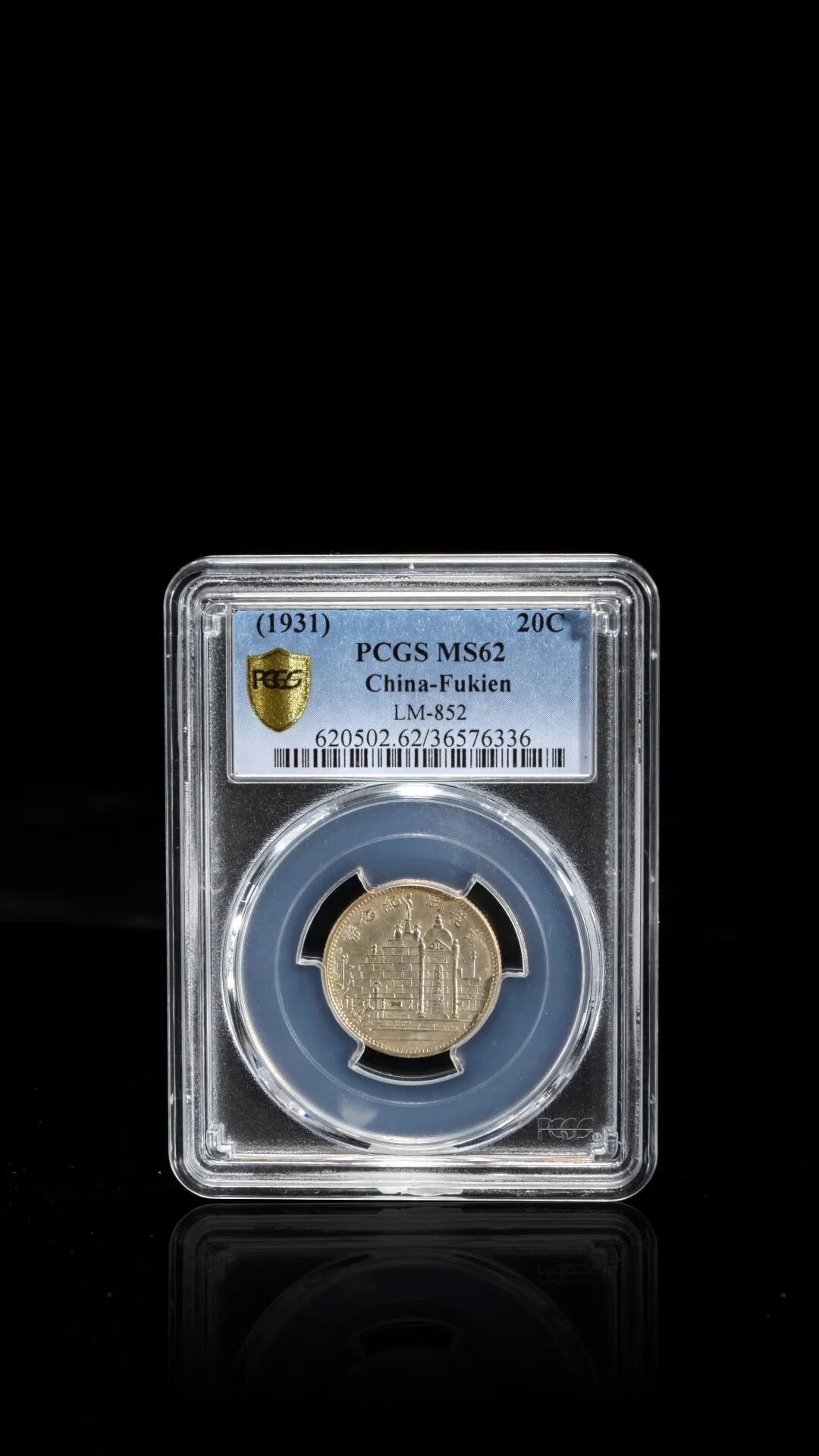 1931年民国二十年福建黄花岗纪念碑贰角银币一枚,PCGS MS62